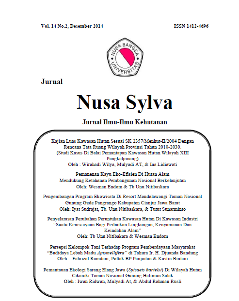 Javanese eagle (Spizaetus bartelsi) is one type of bird of prey endemic to Java. The existence of birds of prey in an ecosystem is very important, because of its position as the top predators in the food chain or pyramid. The purpose of this study was to determine the characteristics and ecological nests, as well as the proliferation of Java Eagle Cikaniki especially in forest areas. Observation method used is cooperative mehod five observation points around forest areas Cikaniki. Through monthly observation, ranges Javanese eagle depicted on the map, and mapped point is the assumption of Javanese eagle nesting sites. Observations are also done through direct observation at the location around the nest. The results explain that Java Eagle identified seven individuals that belong to three families: Pengkeh family, relatives and family Andam I Andam II. During the observation, observed breeding success of one family, it is characterized by the presence of individual chicks that fly around the nest site. During the monitoring also the sound of Javanese eagle chicks in the vicinity of the nest. Cikaniki in forest areas, family observed using the Java Eagle Castanopsis argentea tree to lay a nest. The tree is a towering trees compared to other tree with a height of about 30 meters. Java Eagle nest situated at an altitude 16 meters above the ground on the second branch. Nest trees grow at an altitude of 1,100 meters above sea level and on a fairly steep slope topography, close to the creeks and within 500 meters of open wilayan limit.